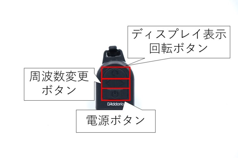 電源を入れた状態で本体上部の中央にある←→ボタンを押すと周波数を変更できます。