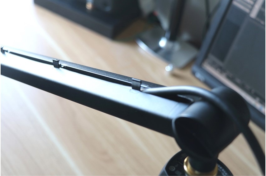 マイクアームもシックなルックスで、どんな机ともマッチする優れたデザインになっています。
