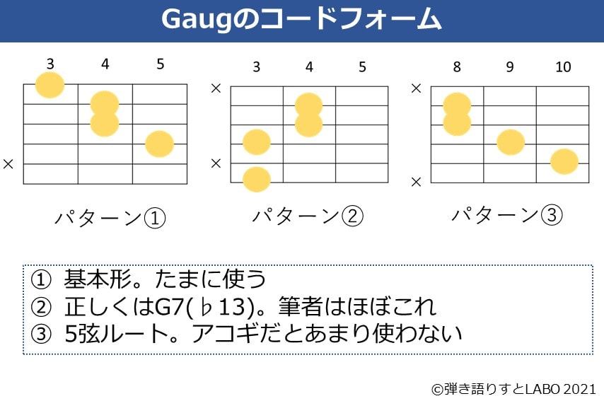 Gaugの主なコードフォームバリエーションは上記の3種類。