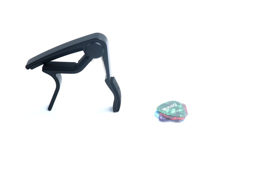 1,000円でカポタストとピック5枚がついてくる、コスパに優れたWINGO JX-09