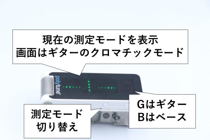 また、測定モードの横にG(ギター)とB(ベース)を表示する楽器モードが付いています。
