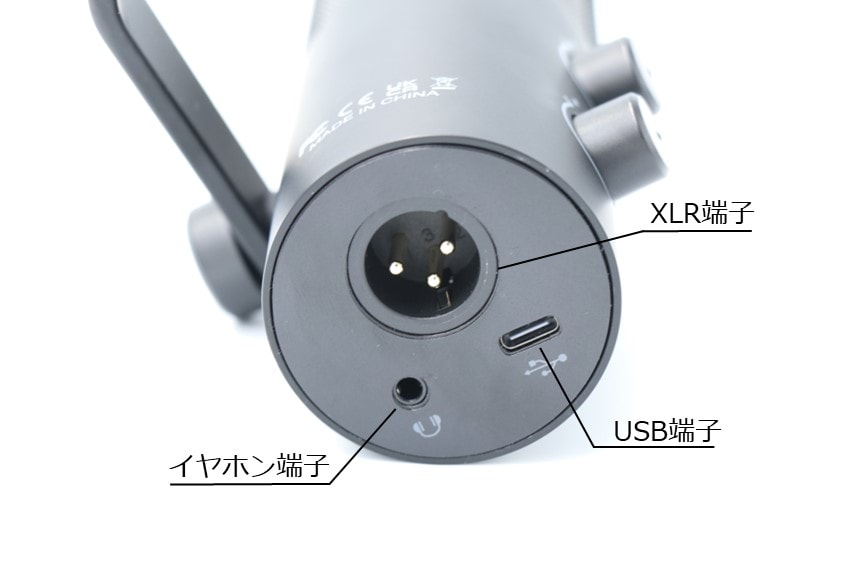 マイク本体の底面にはXLR端子とUSB端子が両方用意されています。