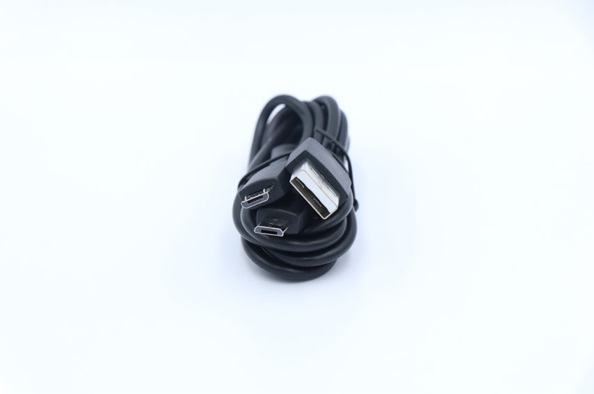 付属の二股USBケーブル(USB 2.0)で同時充電可能になっています。