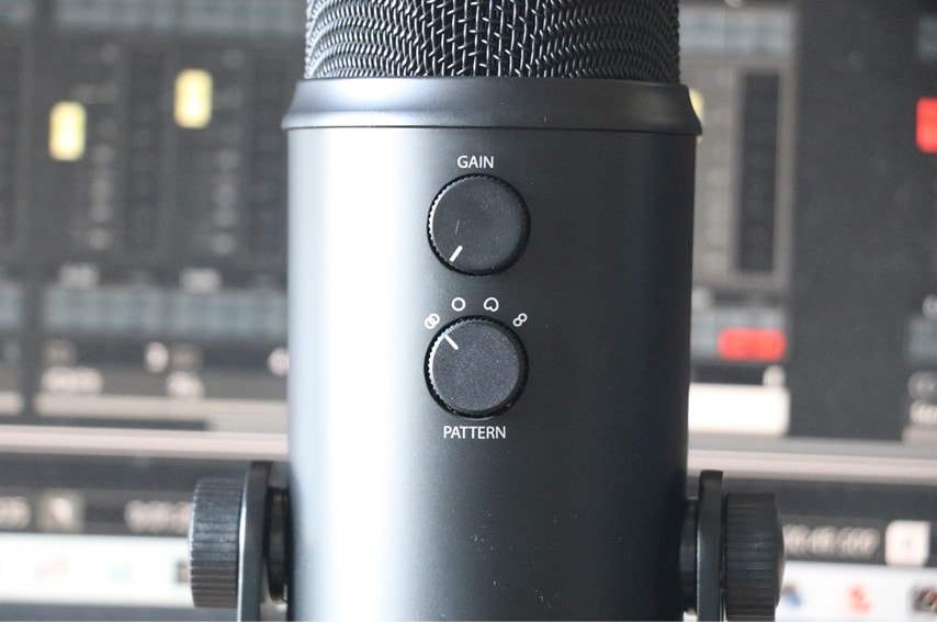 Yeti nanoと比較すると、本体にマイク入力を変えられるゲインつまみが搭載されています。